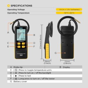 Bärbarhet och hållbarhet: Enheten är kompakt och lätt, vilket gör den enkel för bilägare och verkstadstekniker att transportera och använda i olika arbetsmiljöer. Sonden är utrustad med en 800 mm lång flexibel slang för bekvämare och smidigare användning. Slangen är tillverkad av teflon, ett material som erbjuder hög oljebeständighet, oxidationsbeständighet och korrosionsbeständighet, vilket avsevärt förbättrar enhetens hållbarhet och livslängd.